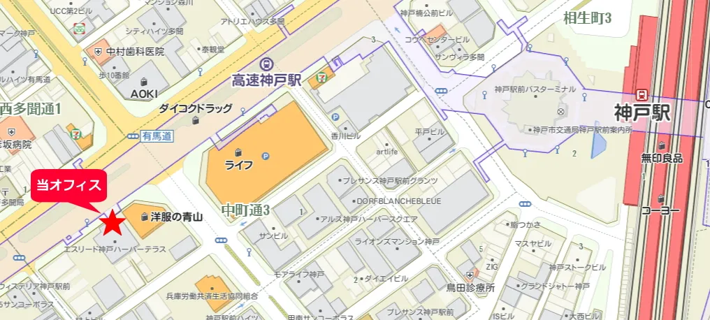 JR神戸駅から見た当相談室の位置